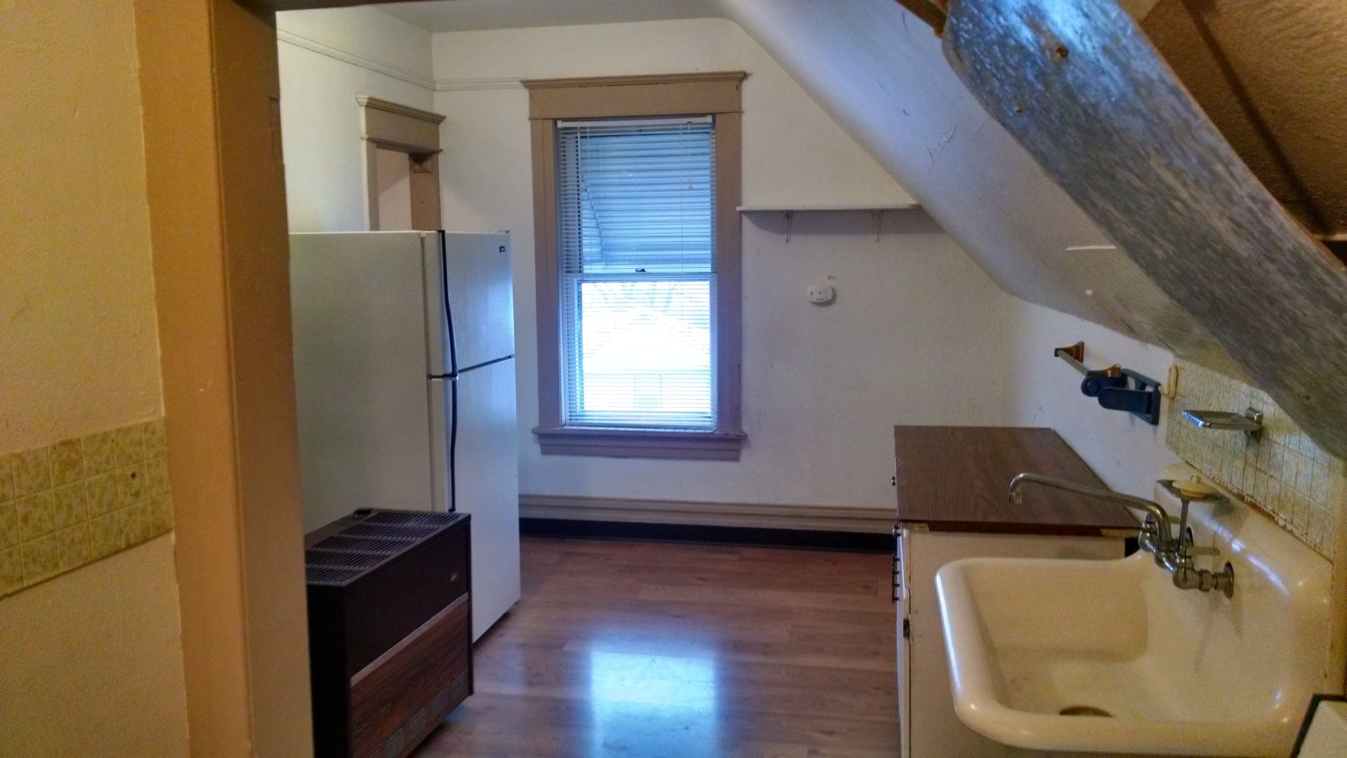 This is a studio with an nice open floor plan and a convenient downtown location. With a pantry closet, shelving, and a closet in the living room/bedroom, you will have plenty of storage. There is a shared bathroom on the floor for 5 units. Pets are not accepted at this property, and ADEA does not allow smoking in any unit.